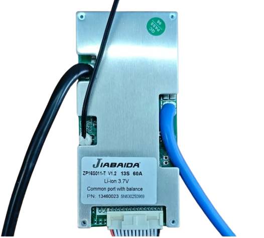 BMS NMC 13S 60A JBD (ZP16S011) is a high-power battery management system designed for 48V (13S) lithium-ion/NMC battery packs, offering 60A continuous current, intelligent cell balancing, and advanced protection features for safe and efficient battery performance.