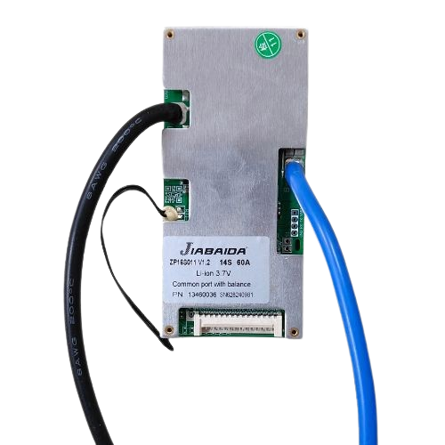 The JBD NMC 14S 60A BMS (model ZP16S011 / 654T) is a high-performance smart battery management system designed for 52V lithium-ion (NMC) battery packs. It supports 14-series (14S) configurations, making it ideal for electric vehicles, solar energy storage systems, and medium-to-high power lithium battery applications.
