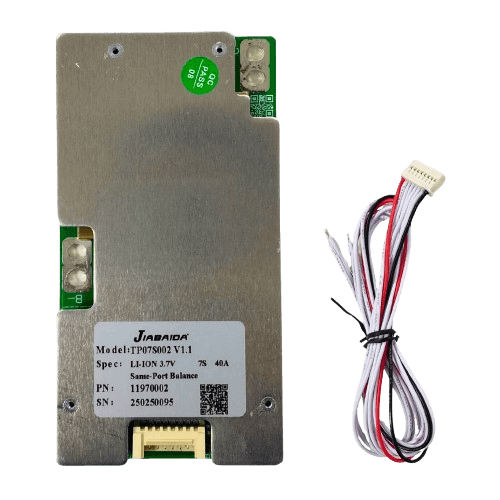 The BMS NMC 7S 40A JBD (TP07S002) (11d5e) is a reliable and efficient battery management system engineered for 7-series (7S) lithium-ion / NMC battery packs. Built using JBD (Jiabaida) technology, it provides advanced protection, stable performance, and extended battery life.