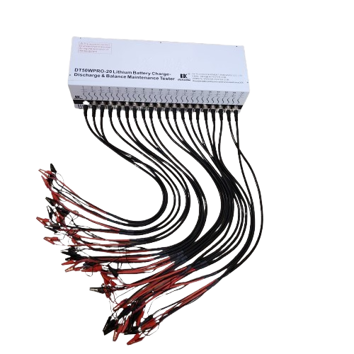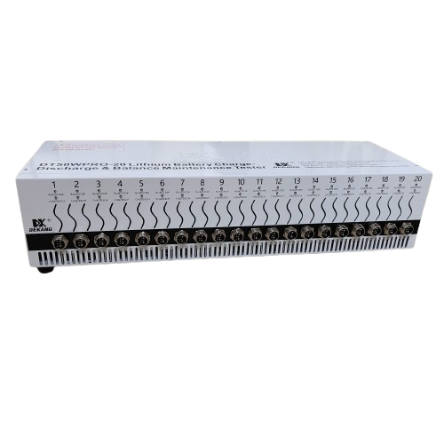 The DT50WPRO-20 is a state-of-the-art lithium battery tester designed for cell aging analysis, balancing maintenance, and capacity grading. This 20-channel device is engineered to optimize the performance and lifespan of lithium-ion battery packs by ensuring uniform voltage levels across all cells, thereby preventing issues related to imbalances.